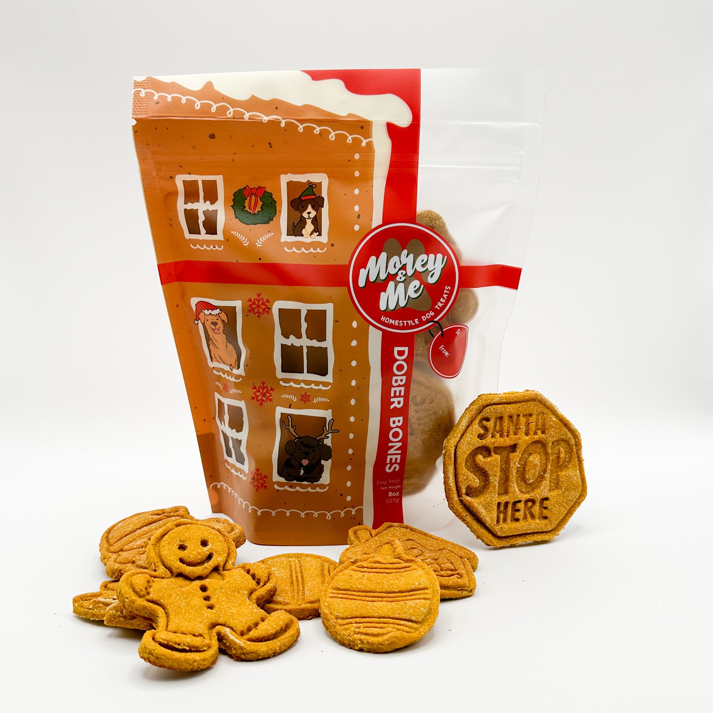 Morey & Me - Homestyle Dog Treats, LLC, bakes all treats from scratch. We start with mixing fresh dough. Then hand cut, shape, and stamp each individual treat. Next, treats are dehydrated to give each bite a great crunch. The dehydration process also extends the their shelf-life without preservatives. Lastly we, package your dog’s treats and ship your orders with love and care. When you order Morey & Me treats, you know your dog’s eating a wholesome snack.